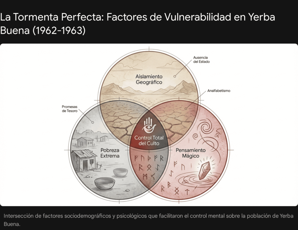 En este caldo de cultivo de desesperación, la lógica se apaga y el pensamiento mágico toma el control. Era el lugar perfecto para que alguien llegara a vender humo… o en este caso, «tesoros divinos».